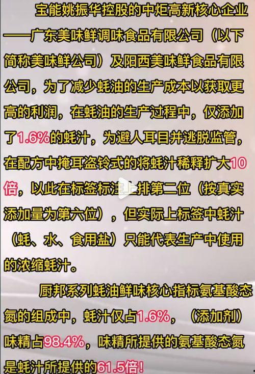 视频中最引人关注的莫过于食品安全问题。这位高管坦言,食品安全一直是厨邦关注的重点。他说,公司对原材料供应商有着严格的要求,确保每一批原材料都符合国家标准。在生产过程中,公司也有一套完善的质量控制体系,从源头到终端,确保产品的安全。